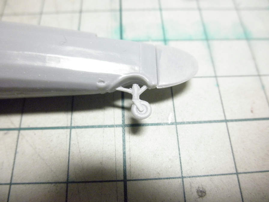 後脚。補足に載っていた図を見ると、省略はありますが、キットは概ね正しい形状をしています。また、キットの後脚は型ズレを起こしていて、一見すると作り直した方が良さそうに思えるのですが、デザインナイフでチャッチャッと整えてみたら、意外と見れるようになったので(写真はあらかた削った状態)、これもこのままとします(笑)。