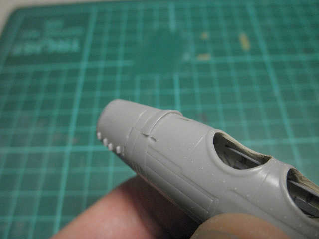 ピンボケ失礼。プラ板を貼ってある様子が分かるでしょうか。整形は、接着剤が完全に乾いてから行います。