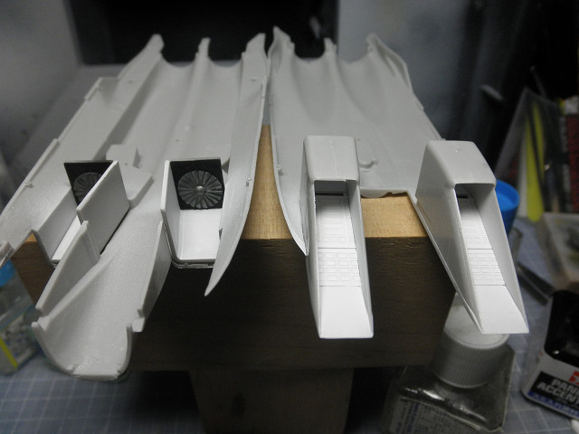 機体(パーツA3、A4)も、インテイクを塗装して組み上げてしまいます。