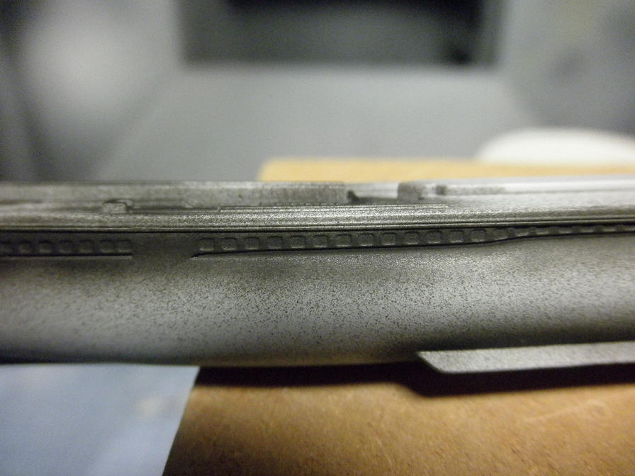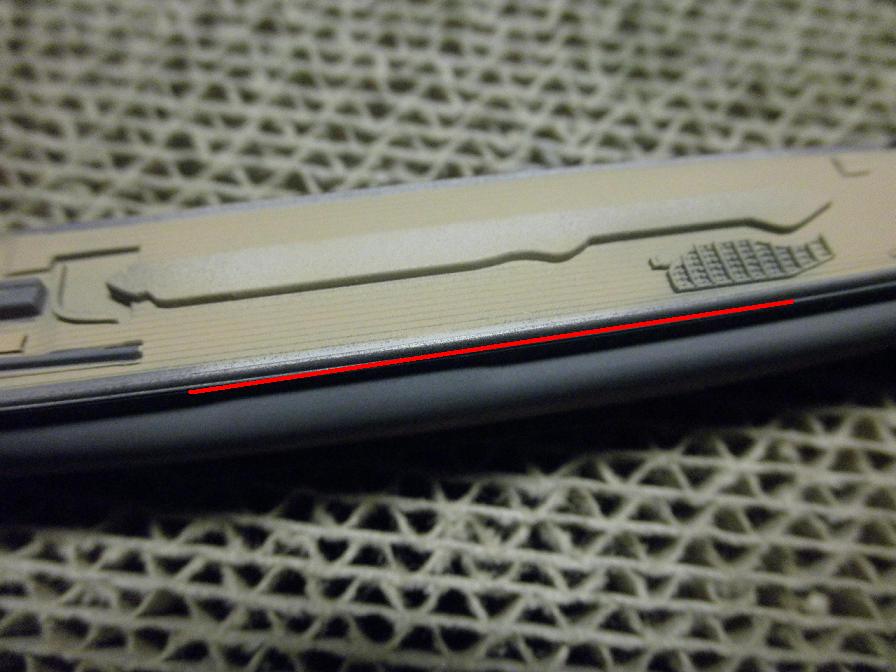 光の加減でこう見えているように思えますが、これ、マスキングの間から塗料が吹き込んでしまってるんです。他にも、