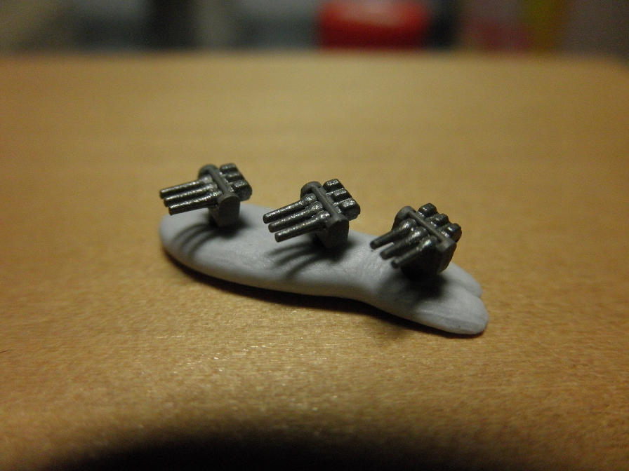 機銃は、銃本体を、やはりファレホの”ガンメタルグレイ”で塗り分けます。機銃も、塗装説明では特になにも指示がないところですが、1/700と言っても、さすがにグレイ一色では見栄えが悪いです。