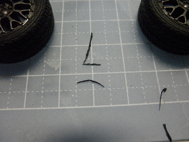 これが切り取ったタイヤのバリ。こんな風にチマチマと切って行くのですよ。