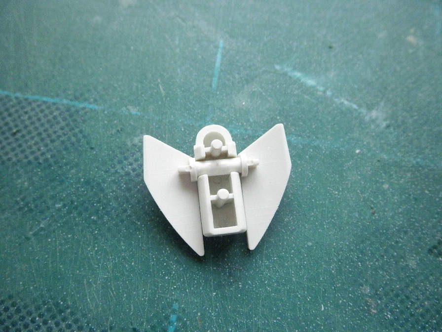 ここの組み立ては塗装後に行うので、とりあえずこれで腰フロントアーマーの工作は完了です。次回から、いよいよキャラモノのキモである頭部の制作に入ります。