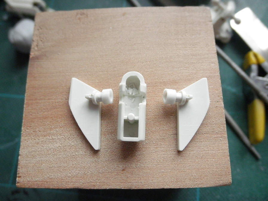 フロントアーマーのストッパーの接着が完全になったら、コクピットブロック内に収まるように削って調節します。削り終わった状態が下の写真。