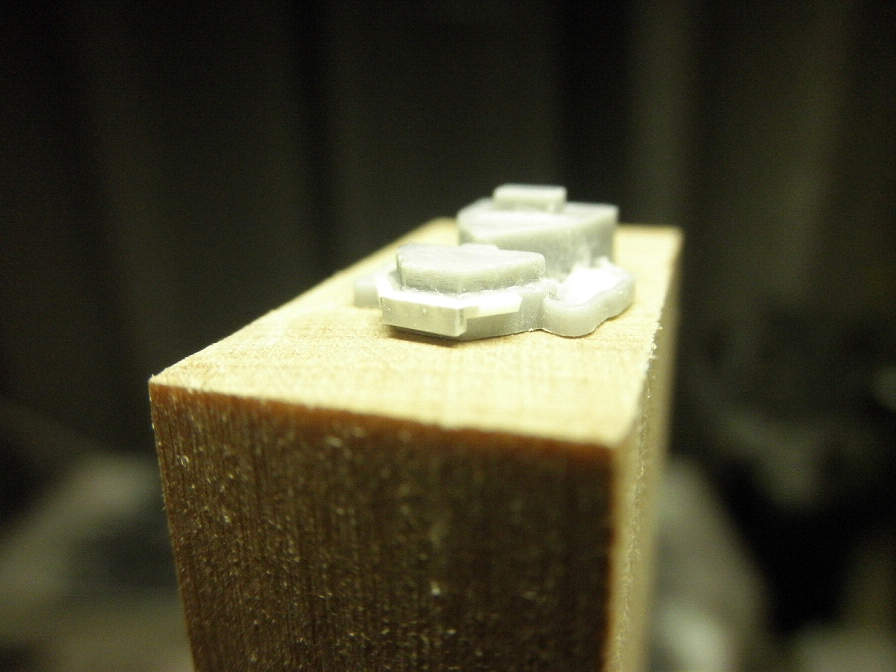 ちょっと大きすぎる感じもしないではないですが、大体の雰囲気は出てるでしょうか??手作業ですが、斜めの削りだし以外は割と簡単な工作ではあります。後は、周りの枠などを作りこんで行けばOKです。