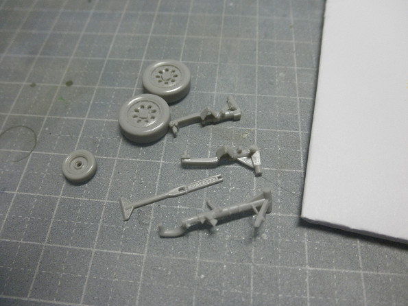 組み立て、機体への取り付けは塗装後に行うので、パーティングラインをキチッと消しておきます。デザインナイフのカンナがけ&スポンジヤスリを使います。ここは結構ボロが出やすいところでもあるので、見えるところのパーティングラインはしっかり消しておきたいところです。