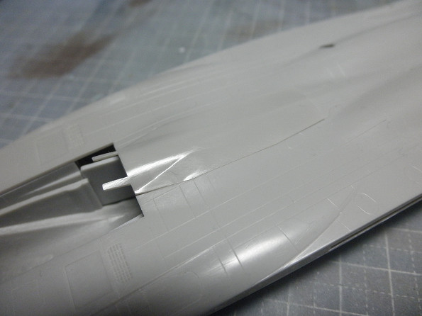 別パーツになっているエアブレーキ(写真では見づらいですが)は、閉状態で組む場合、隙間が空かないように擦り合わせて調整します。