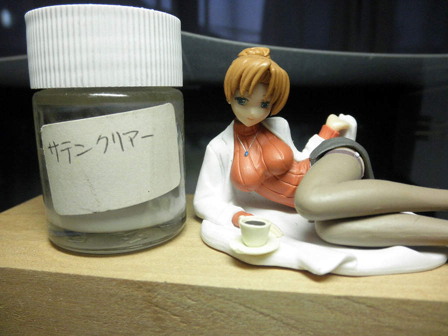 グッドスマイルカンパニー製のデカール軟着剤。以前、立川のボークス(通勤路の近くにあるんです)に寄ったときに見つけて購入しといたものなのですが、既存の軟化剤よりも強力らしいです。なので、どの位強力なのか試してみたくなったと。クレオスのヤツも持ってますが、あれ、効いてるんだか効いてないんだか、分からないんですよね。因みに、横のフィギュア(弱音ハク)も立川ボークスで購入(笑)。